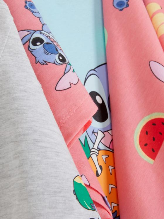 Character: StitchNeckline: CrewSleeve Length: Short sleeveMaterial Composition: TOPS-100% Cotton, PINK SHORTS-100% Cotton, GREY SHORTS-98% Cotton, 2% PolyesterFire Safety: WARNING! Keep away from fire