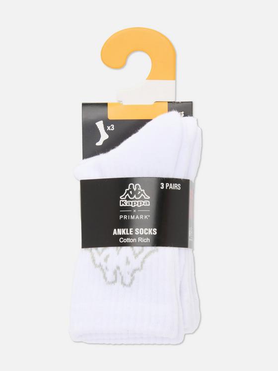 A three-pack of Kappa-branded ankle socks with ribbed cuffs