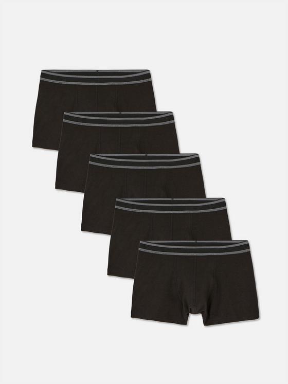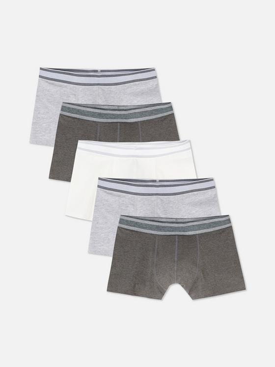 Five pairs of classic boxer briefs with striped waistbands and a hipster fit