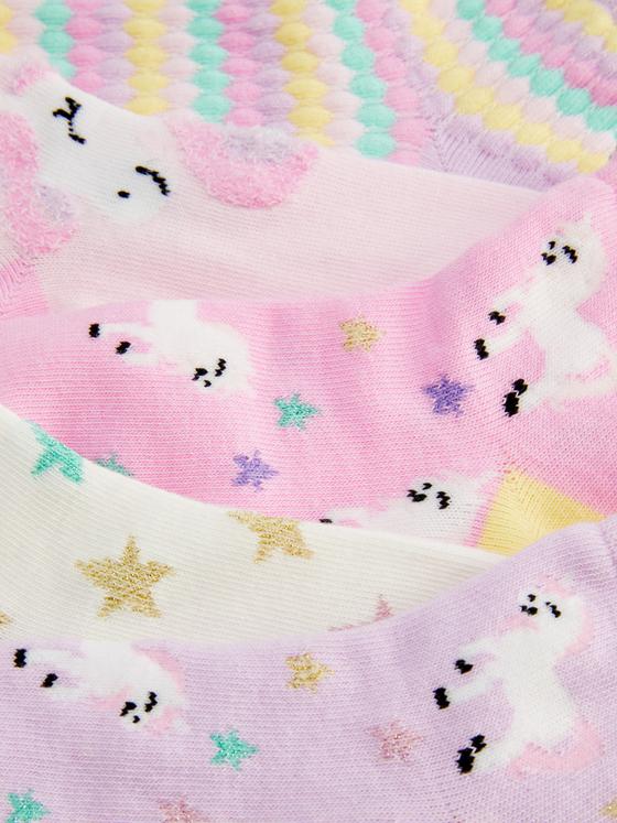 A sock multipack with rib cuffs and unique unicorn-themed designs