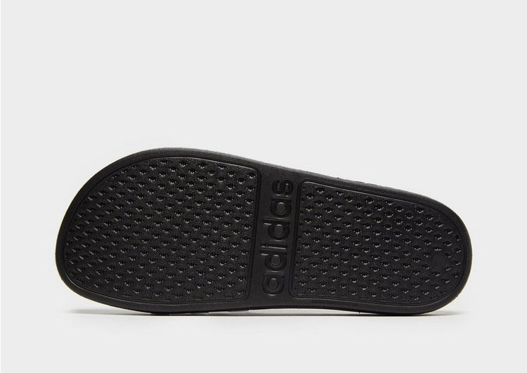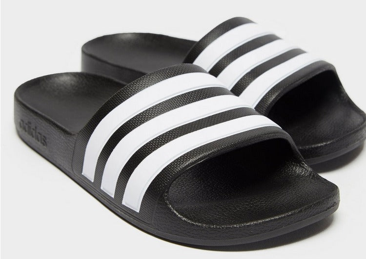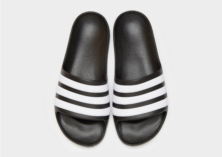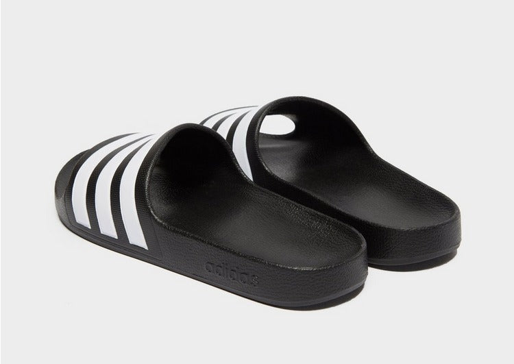 Keep your feet feelin' comfy and chilled out with these juniors' Adilette Aqua Slides from adidas. In a black colourway, these slides are made with a synthetic strap upper for easy access and a secure wear. Sat on a chunky Cloudfoam footbed for next-level cushioning in every step, they're perfect for chillin' at home or on your hols. With a grippy outsole, they are finished with adidas branding to the sides and contrasting white 3-Stripes across the strap.|F35556