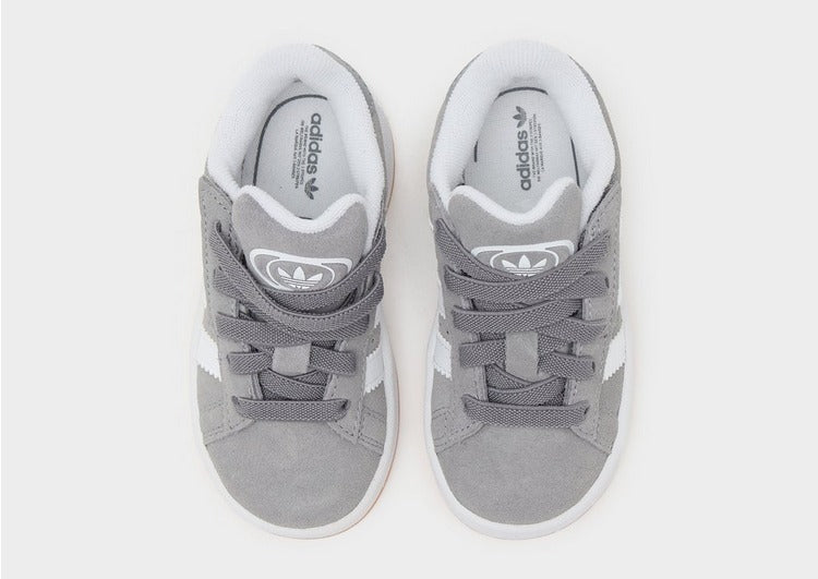 Lace the next gen up in icon 3-Stripes style with these infants' Campus 00s trainers from adidas Originals. In a Grey Three colourway, the suede and leather upper offers a premium edge, while the towel-like lining feels plush. They feature elastic laces and a hook-and-loop strap for easy on-and-off, while the Cloud White midsole cushions every step. With a Gum rubber outsole for grip, they're finished off with oversized 3 Stripes and retro Trefoil badges. | JI4334