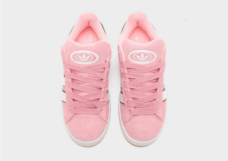 Freshen up your rotation with these juniors' Campus 00s trainers from adidas Originals. In a Glow Pink colourway, these skate-inspired kicks have a soft suede upper for premium wear. They have a tonal lace fastening with thick padding around the collar and tongue. With a chunky foam midsole for plush comfort, they're signed off with a grippy gum rubber tread and iconic adidas Originals branding. | JR9595