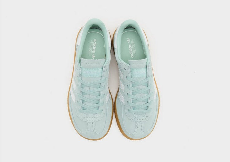 Upgrade your little one's rotation with these adidas Originals Handball Spezial trainers. Coming in a JD-exclusive Ash Green colourway, these low-pro kicks have a soft suede upper for lasting wear. They have a tonal lace fastening with light cushioning underfoot for plush comfort. A grippy gum rubber outsole delivers all-day traction. Finished with iconic adidas Originals branding throughout. | _JR4971