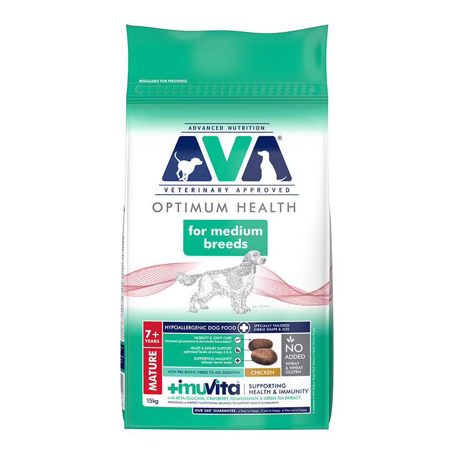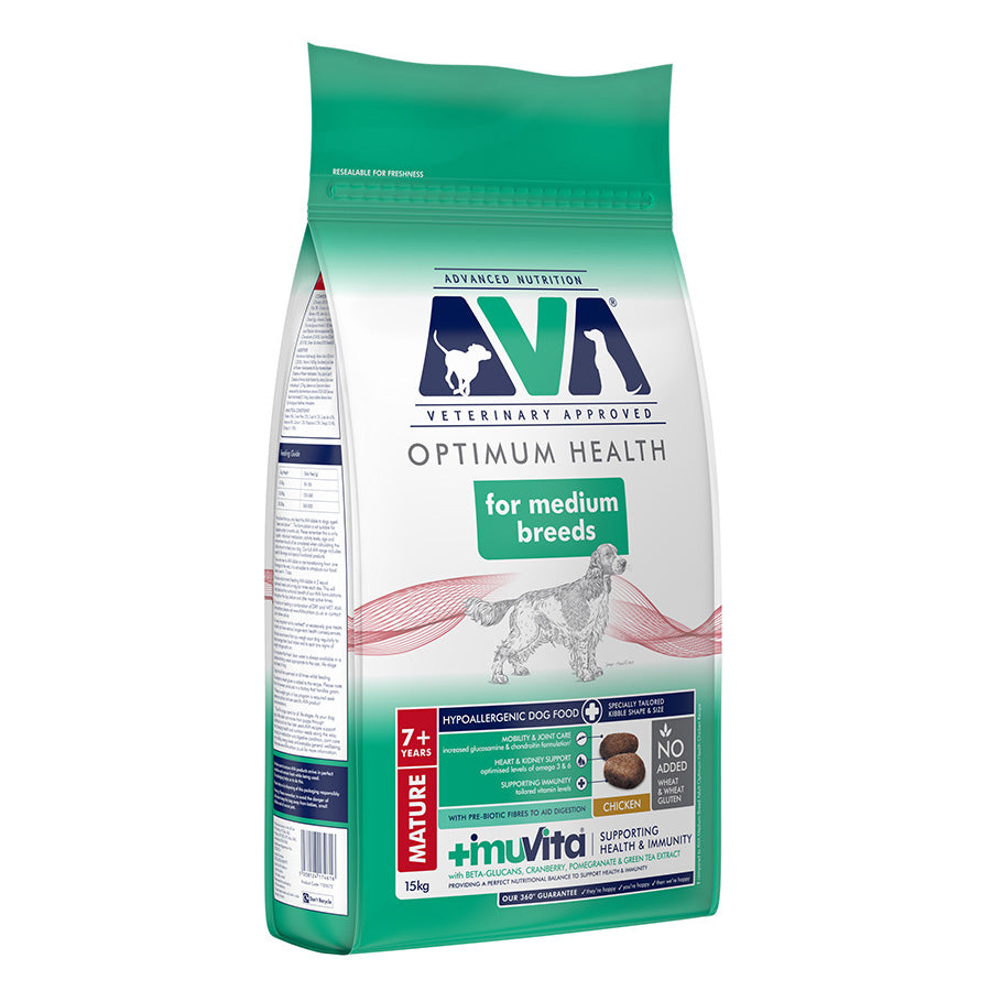 AVA Optimum Health Medium Breed Senior Dry Dog Food Chicken 15kg