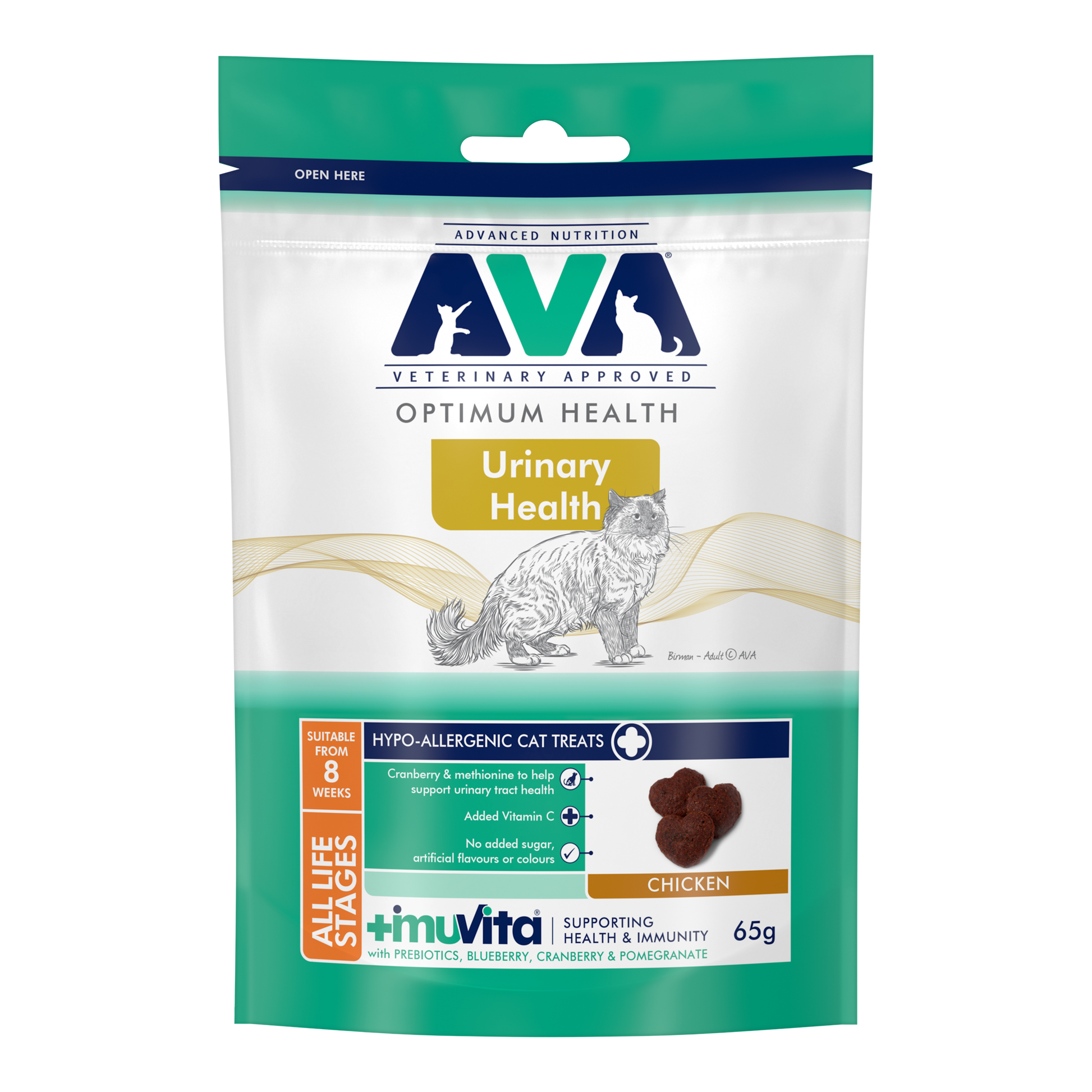 Designed by AVA as a delicious treat for your cat, Made with natural ingredients including chicken, and with added vitamins and minerals. This advanced formulation designed with cranberry & methionine to help support urinary tract health, and with added antioxidants.