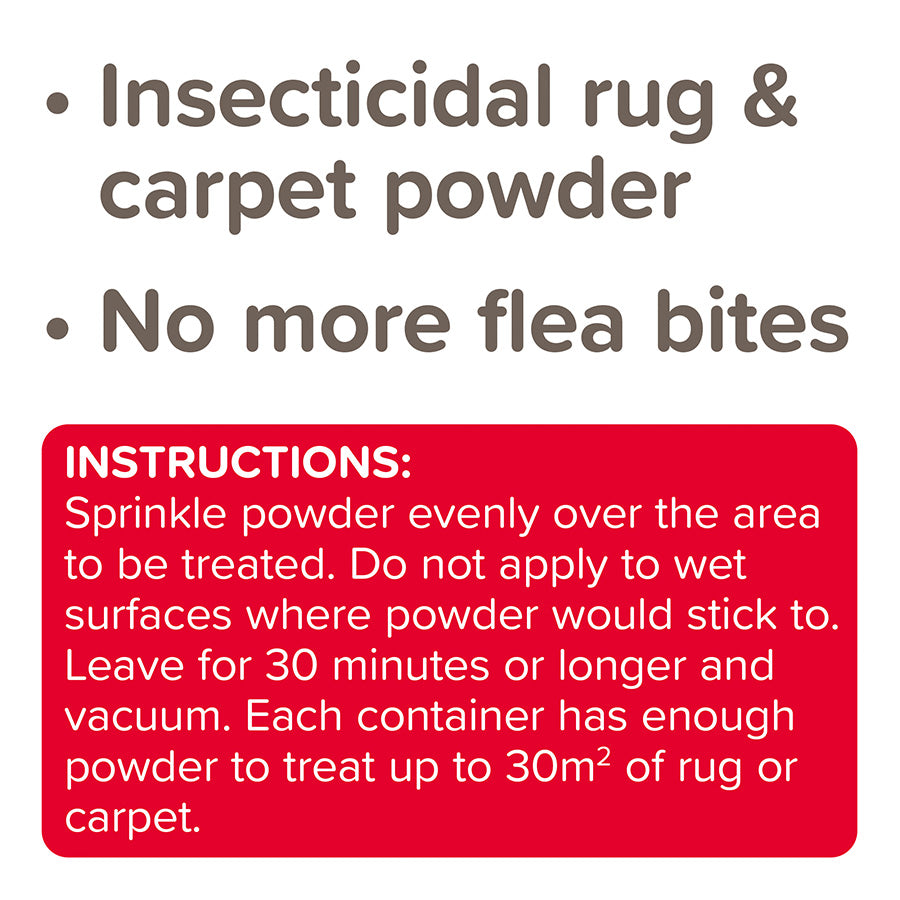 - Easy to use - Simply sprinkle on carpets and soft furnishings, wait for a minimum of 30 minutes, before vacuuming