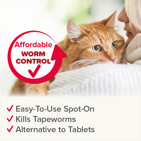 This easy-to-use spot on kills tapeworms fast. As fleas can carry tapeworm eggs, it’s important to ensure your cat's flea treatment is up to date, to reduce the risk of reinfestation from ingesting infected fleas.