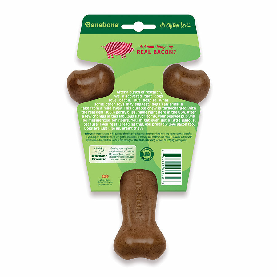 Dogs love to chew, especially on stuff that tastes like real bacon. The Wishbone is easy to handle, tastes awesome, and stands up to heavy chewing. The Benebone Wishbone chew toy is curved for a paw-friendly grip so your pup can quickly grab it and get a good chew going. Only 100% real bacon is used for flavour as dogs can almost certainly tell the difference!