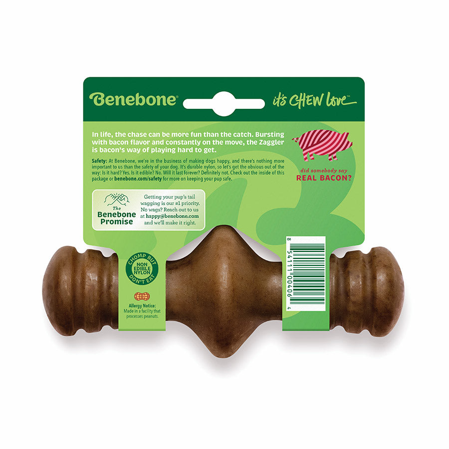 If your dog would love a game of chase and chew then the Benebone Zaggler chew toy is the perfect choice for them. This chew toy likes to roll around and is constantly on the move. It's bacon's way of playing hard to get!