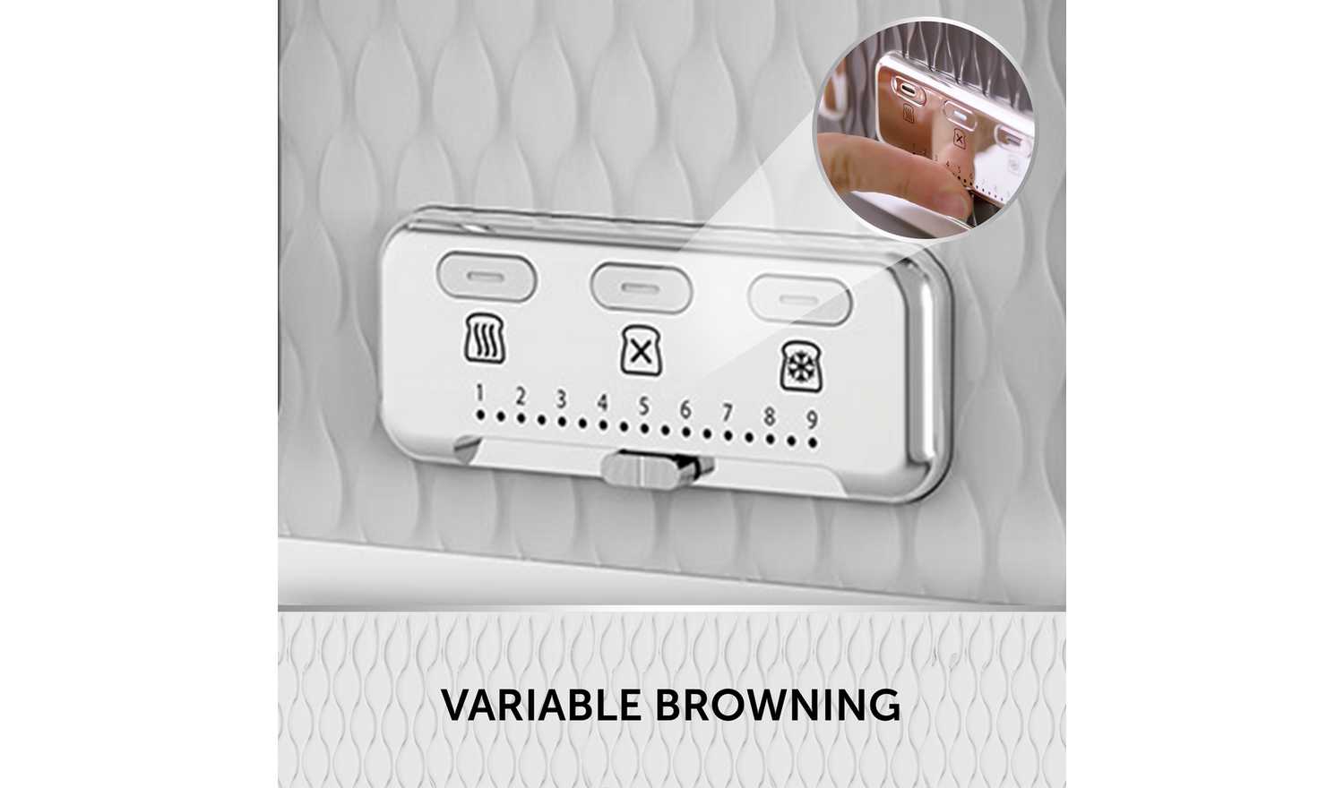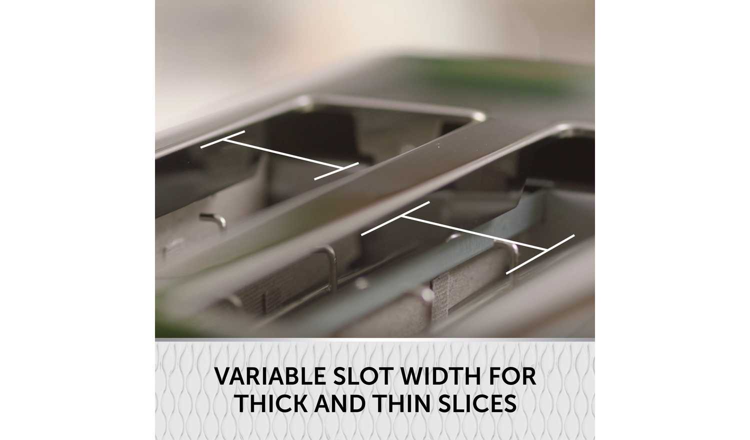 This Breville toaster looks stylish and also handles the basics with ease. The deep, variable width slots accommodate different bread sizes, crumpets and bagels, while the variable browning controls ensure every slice is just the way you like it. Remove smaller slices without burning fingers with the High Lift facility. A removable crumb tray and cord storage helps keep your worktop clean and tidy.