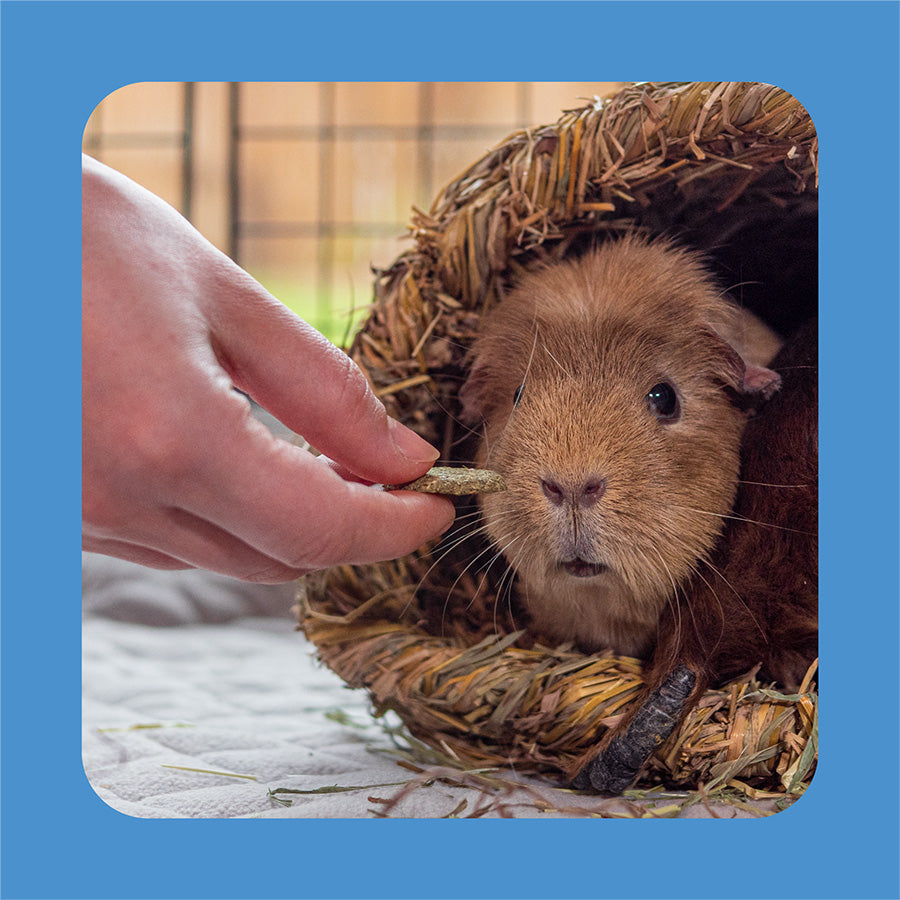 Along with nutritious feeding hay and grass-based nuggets, did you know that you can also choose healthy treats for your small animals? Treat your rabbits, guinea pigs, or chinchillas to the Forage & Feast Hay Bar with Cornflower. Rabbit and Guineas need plenty of fibre to maintain healthy digestion, enjoying a munch on fibre-filled treats also helps keep their teeth in good shape. Yummy, healthy treats add enrichment to your pets’ day and are great for training and hand feeding, helping you to build your bond with your buns and guinea pigs. Rabbit treats can also stimulate natural behaviours – sprinkling some treats for rabbits through their feeding hay encourages foraging, which helps keep your buns busy and happy.