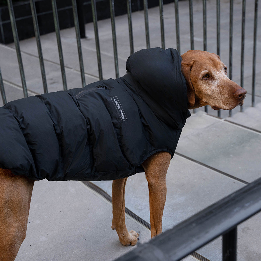Their first insulated dog parka with a waterproof shell to protect your pup from the elements.