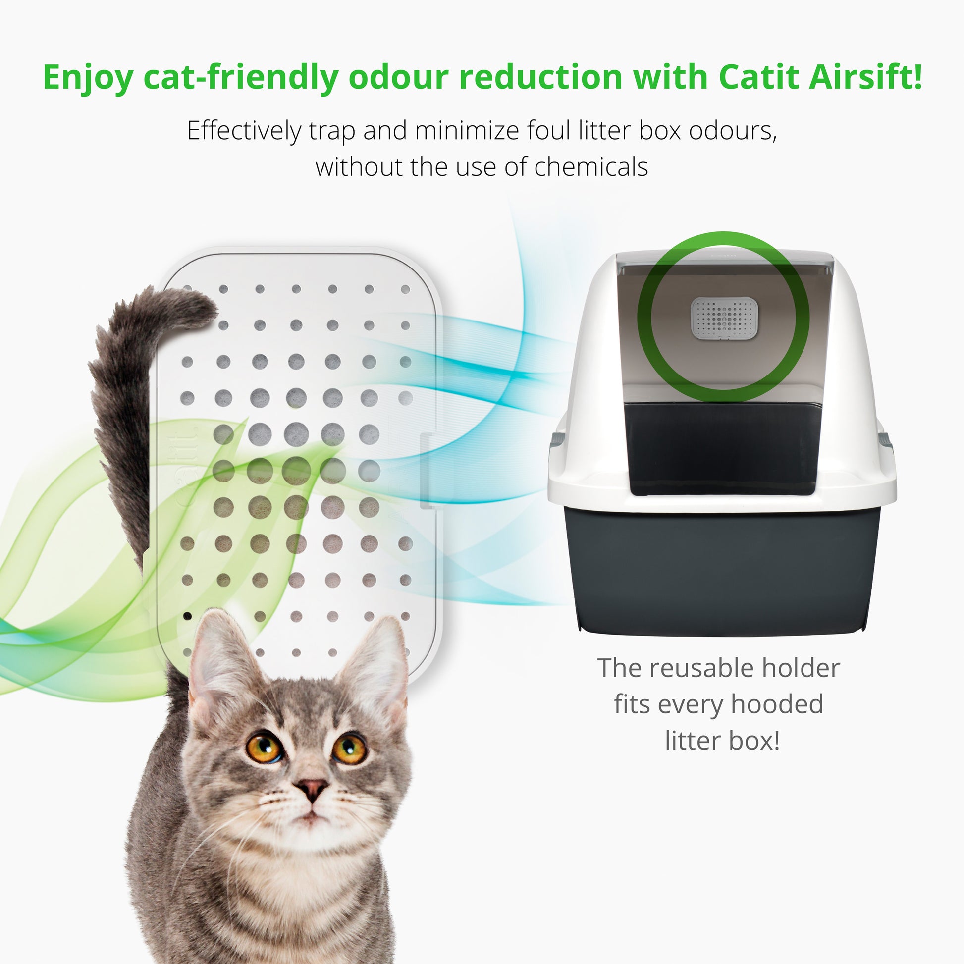 - Recloseable holder - AiRSiFT cartridge fits perfectly and suitable for any hooded litter box