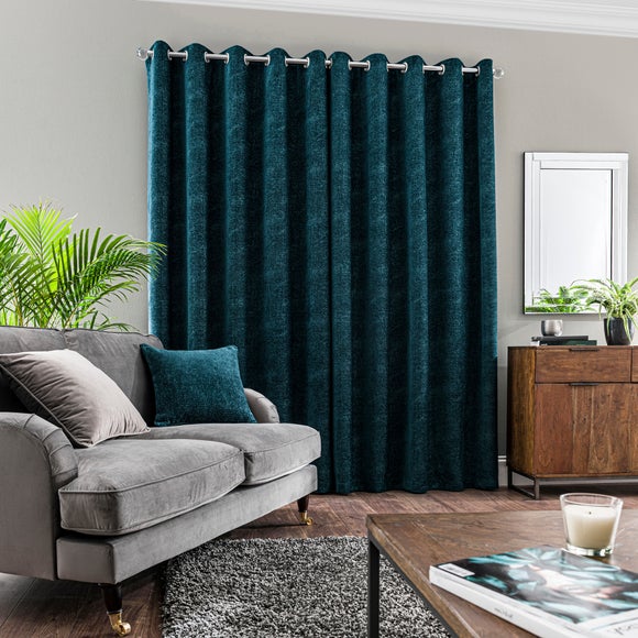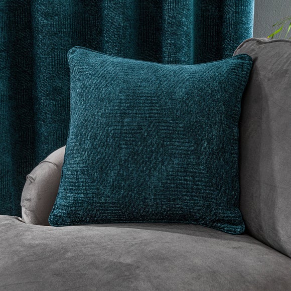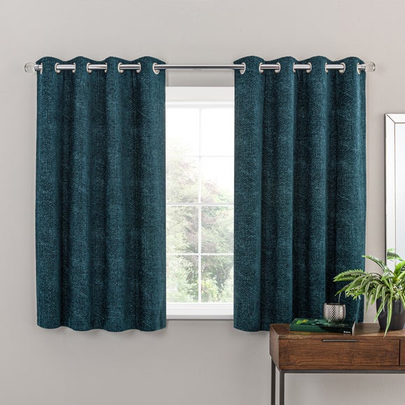 Crafted from a sumptuously smooth chenille yarn for a luxurious texture, these luxury eyelet curtains feature a modern geometric jacquard design to create the ultimate style update. These curtains bring a touch of opulence to any room and transition effortlessly with your decor. Fully lined for improved insulation and a beautiful undulating drape, these curtains are finished with a modern eyelet header and are easy to hang. These curtains are crafted from quality materials for added longevity and are completed in a sophisticated peacock tone to complement a range of decors. Available in a variety of widths and drops to suit your needs, a coordinating feather filled cushions is also available to purchase separately.