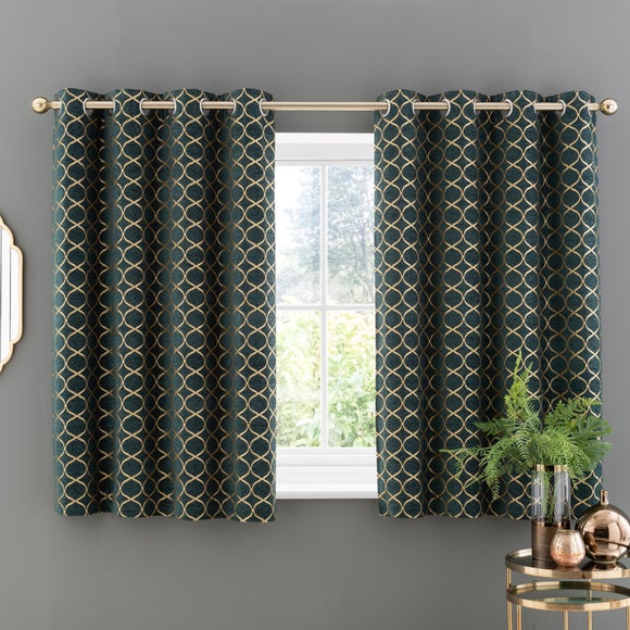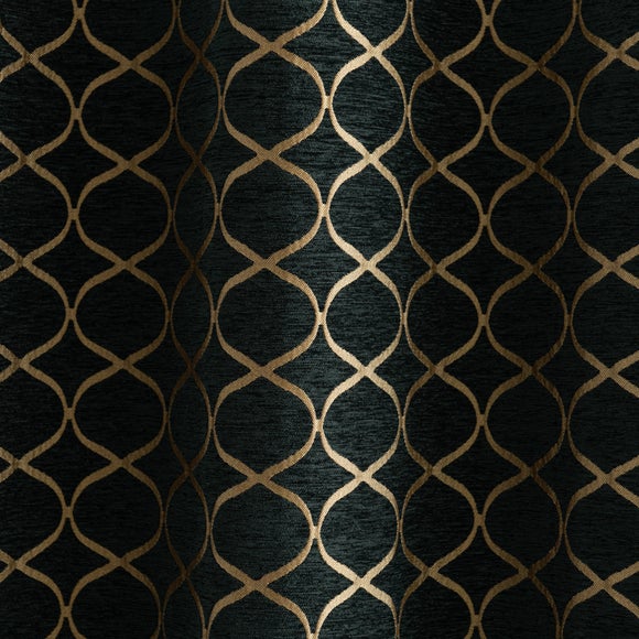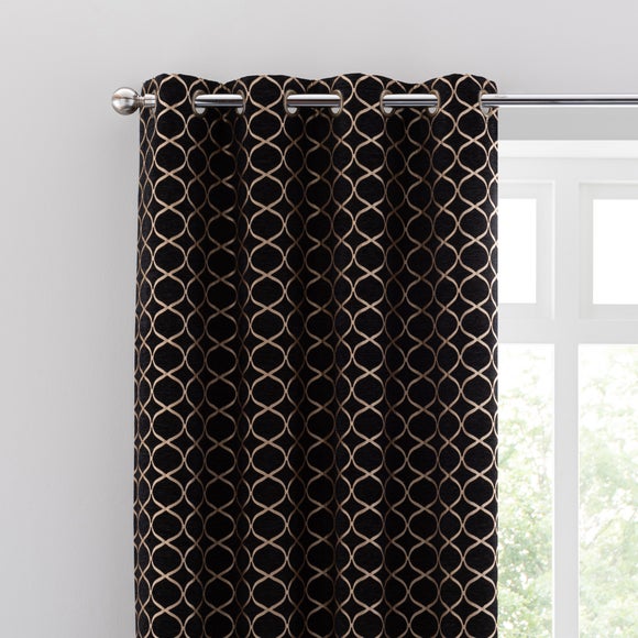 Crafted from a stunning jacquard chenille fabric for a beautifully soft texture, these stylish black curtains are decorated with a stunning ogee pattern and are perfect for bringing a luxurious finish to any room. These curtains are fully lined to improve insulation while increasing privacy and are designed with a modern eyelet header for easy hanging and a gorgeous drape. Available in a selection of widths and drops, these curtains are ideal for lending an opulent edge to your décor. A coordinating cushion is available to purchase separately.