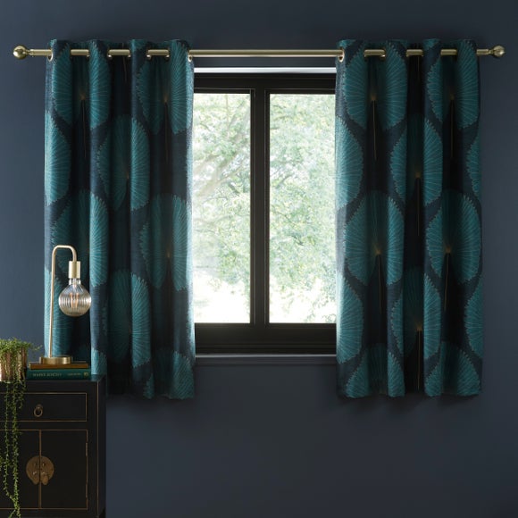 This pair of curtains features an elegant, geometric fan design which will perfectly enhance your home interior. The polyester lining will help preserve the design and front fabric from fading, making these curtains long-lasting. Complete with a smart eyelet header, these curtains are designed for use with a curtain pole. Coordinate the curtains with the matching cushion for a stylish room look.