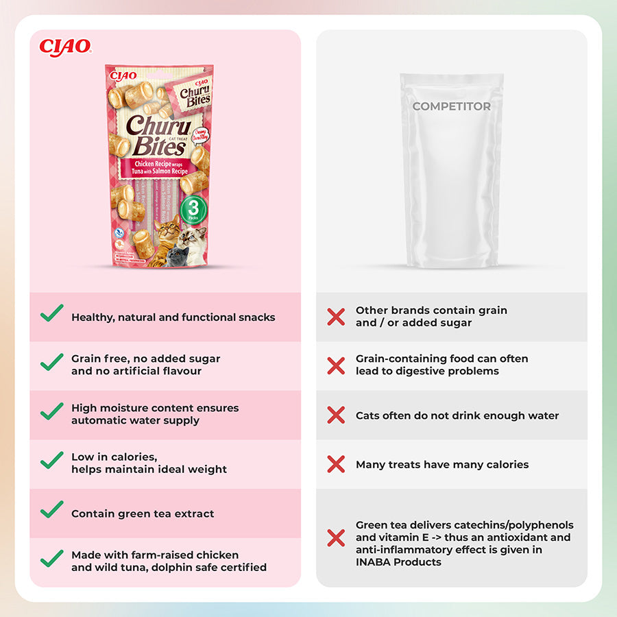 Ciao Churu Cat Treat Bites Chicken, Tuna & Salmon Bites 3x10g