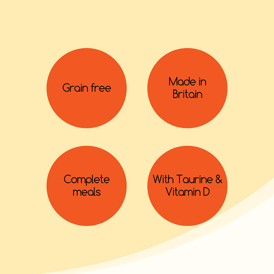 Classic are passionate about caring for your cats and are proud to have three generations of British farming heritage and pet care expertise. They believe nothing is better for your cats than eating a natural diet of meat and fish. We all enjoy feeding our cats a variety of food but they gain optimal nutrition by eating a diet high in natural animal and fish protein. This is what cats' bodies are naturally designed to digest, helping them stay at their healthiest from the inside out. That's why Classic guarantee that all their food for cats' recipes won't ever contain grains, cereals or preservatives. Classic carefully prepare all their recipes in the heart of England with natural ingredients supporting British and Irish farmers and fishermen.
