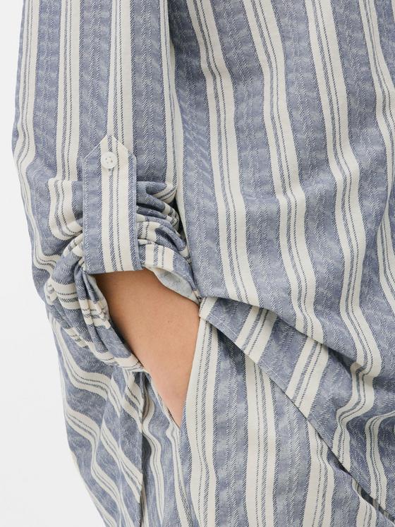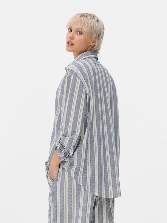 Stay stylish whatever your plans with this must-have jersey shirt. Featuring a classic collared neckline, it's made from a soft jersey fabric that's super comfy and easy to wear. The button-front fastening can be worn open or closed, making it a versatile pick, meanwhile the striped design adds a chic touch of detail. This shirt is cut to a relaxed fit, giving it an effortlessly stylish appeal, with button detailing to the sleeves, so you can wear them at full length or rolled up. Team it with our matching trousers for a coordinated fit that looks and feels fabulous!