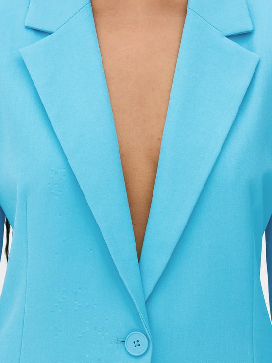 This versatile single-breasted blazer comes in a aqua blue hue, featuring stylish lapels, darts, and flap pocket detailing. Designed to enhance your silhouette, this blazer is perfect for both professional and casual settings. Pair it with a crisp white shirt for a business meeting or layer it over a dress for a chic evening look. When combined with the coordinating tailored trousers, it creates an effortlessly polished ensemble ideal for office wear or a sophisticated dinner date.