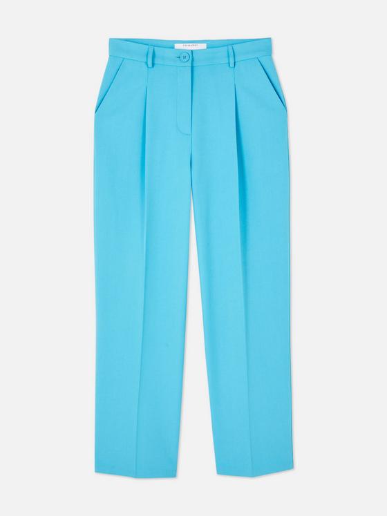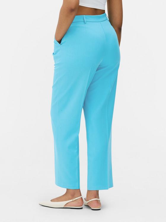 These elegant tailored trousers come in a aqua blue shade and feature belt loops, pleat details and practical slip pockets. They're designed to offer a sleek and comfortable fit, making them suitable for a range of occasions. Wear them with a tucked-in blouse for a day at the office or a relaxed knit for a weekend brunch. Paired with the matching single-breasted blazer, these trousers complete a refined co-ord look, perfect for business events or stylish outings.