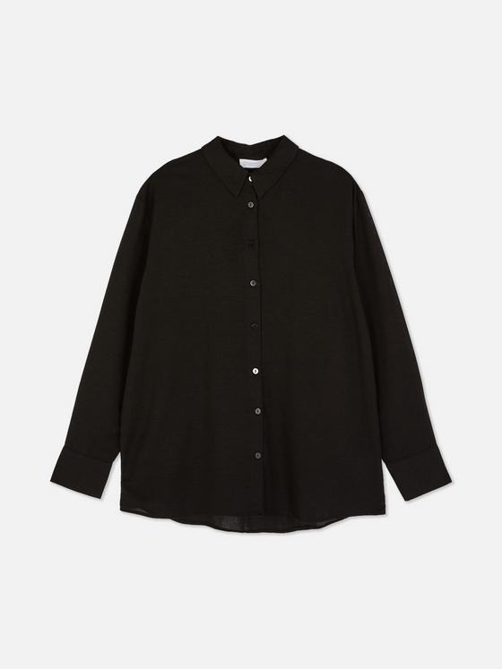 Treat your essentials edit to a new season overhaul with this black cotton blend shirt. Featuring long sleeves and a classic collared neckline, this shirt also features a button-front fastening that can be worn open or closed. The breezy fabric is soft and light, making it the perfect pick on sun-splashed days.