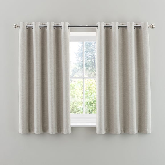 Enjoy a serene look to your room with the Crayton Blackout Eyelet Curtains. Woven with dyed, fancy yarns creating a stylish linear texture, this contemporary pair of curtains are made from durable polyester. Equipped with a blackout finish to stop unwanted light entering your home that also keeps your home warm in winter and cool in summer, this product comes complete with an eyelet header for easy installation and smooth movement across your curtain pole.