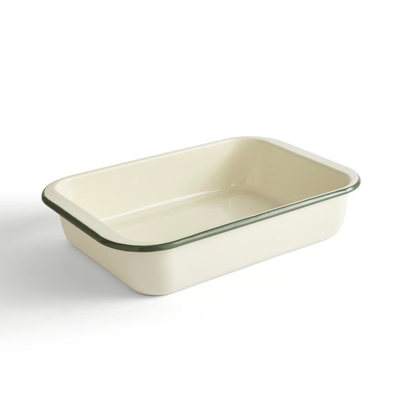 Get your roasting game face on with this high quality enamel coated roaster, designed in a gorgeous cream and sage colourway, perfect for adding that subtle pop of colour to your dinner table. Perfect for both cooking and serving desserts such as an apple crumble or roasted vegetables, this roaster is dishwasher safe for convenient and easy cleaning. Also available in a smaller size.