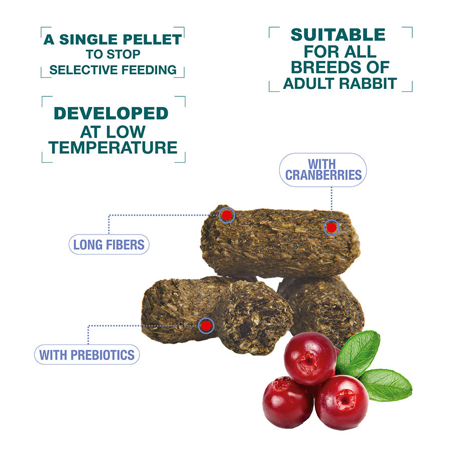 Alpha Pro Adult Rabbit Cunipic presents a feeding solution tailored for adult rabbits aged 6 months and older, designed around a comprehensive dietary approach. This innovative feeding method eliminates the need for rabbits to select preferred pellets, as each pellet is uniformly formulated to encompass the essential nutrients required for your rabbit's vitality, strength, and happiness. This eradicates the risk of nutritional inadequacies stemming from selective feeding behaviours. The pellets within the Alpha Pro Adult Rabbit Cunipic range offer an array of benefits for your rabbit. Notably, the pellets are crafted without undergoing high-temperature cooking processes. Instead, they are gently extruded at low temperatures, thereby preserving the inherent nutritional value and properties of the raw materials. The formulation boasts a modest fat content, supporting weight management, and is void of sugars, rendering it a low-calorie option with a high fibre content. Distinguishing itself from other options, Alpha Pro Cunipic Adult Rabbit pioneers the concept of cereal-free extruded feed, a paramount advancement for rabbit health. This formulation supplies essential vitamins and a balanced calcium-phosphorus ratio. The inclusion of prebiotics acts as a preventive measure against diarrhoea. The elongated fibres in the pellets encourage dental abrasion, promoting oral health, and the substantial fibre content (26%) combined with Timothy hay (29%) contributes to optimal intestinal transit. A notable characteristic of this feed is its exceptional palatability, ensuring its appeal to rabbits. The packaging incorporates a self-sealing mechanism, enhancing preservation and maintaining freshness over an extended period.