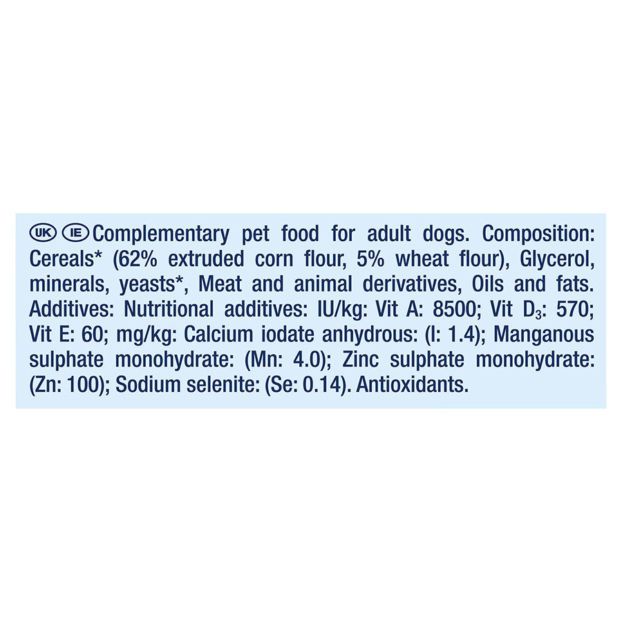 <span style="font-size: 14px;">Cereals*, glycerol, minerals, yeasts*, meat and animal derivatives (1.1% chicken), oils and fats.*natural ingredients.</span>