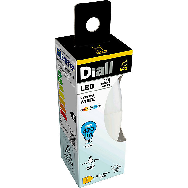Diall B22 4.2W 470lm Frosted Candle Neutral white LED Light bulb