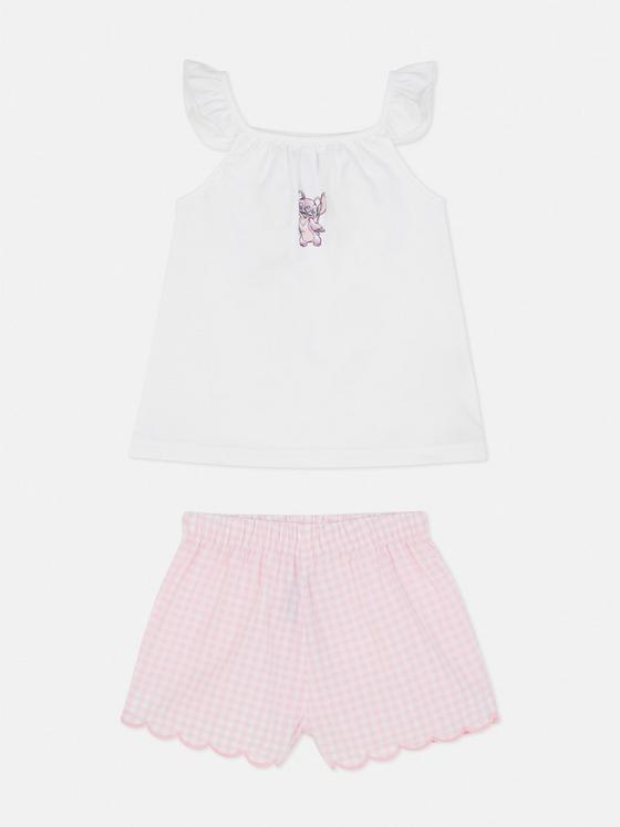 Help them settle down for sweet dreaming with these Disney’s Angel pyjamas. The set includes a white square neck top with flutter sleeves and an adorable chest graphic of Experiment 624, paired with pink gingham check shorts featuring scalloped hems. The cotton fabric of both pieces feels soft against the skin, while the elasticated waistband of the bottoms provide comfort all night long. Perfect for summer sleepovers or lazy weekend mornings, these PJs will bring a smile to any Disney fan’s face. Team with fuzzy slippers and a cosy dressing gown for the ultimate bedtime routine.