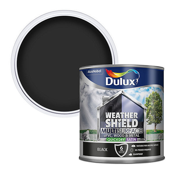 Dulux Weathershield Black Satinwood Multi-surface paint, 2.5L