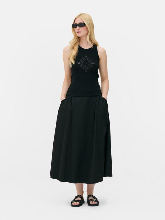 An elevated take on a timelessly classic style, this racer vest is here to keep you looking chic as you soak up those scorching summer rays! Featuring a sleeveless silhouette that's perfect for warm weather days, this vest is made from a cotton-rich fabric that feels crisp and comfy. An easy-breezy option that will see you through the season, it's finished with embroidery to the chest, giving it an elevated look and feel that transitions seamlessly from day to night. Style it up or dress it down, we love it best with denim shorts and flat sandals for a fail-safe off-duty fit.