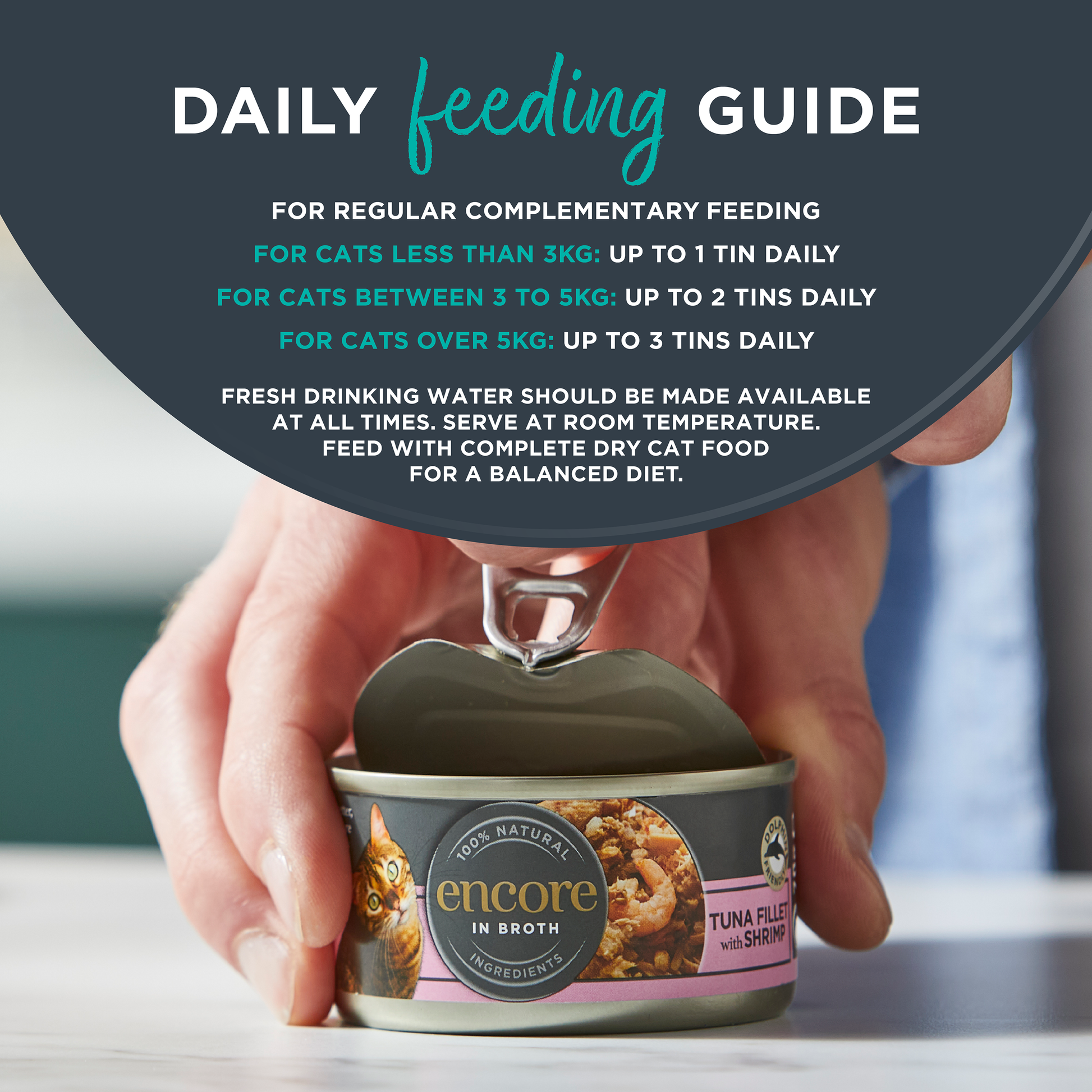 The natural ingredients in an Encore tin are certain to make your cat really happy. There are no artificial flavours or additives and every portion is made with 75% protein-rich meat which helps to promote lean muscle tissue.