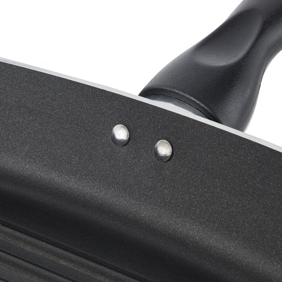 Suitable for most hob types, this 28cm griddle pan is part of our Essentials range and features an exceptional double layer non-stick coating for excellent food release. Dishwasher safe for ease of cleaning and comes complete with a soft grip handle for added comfort.