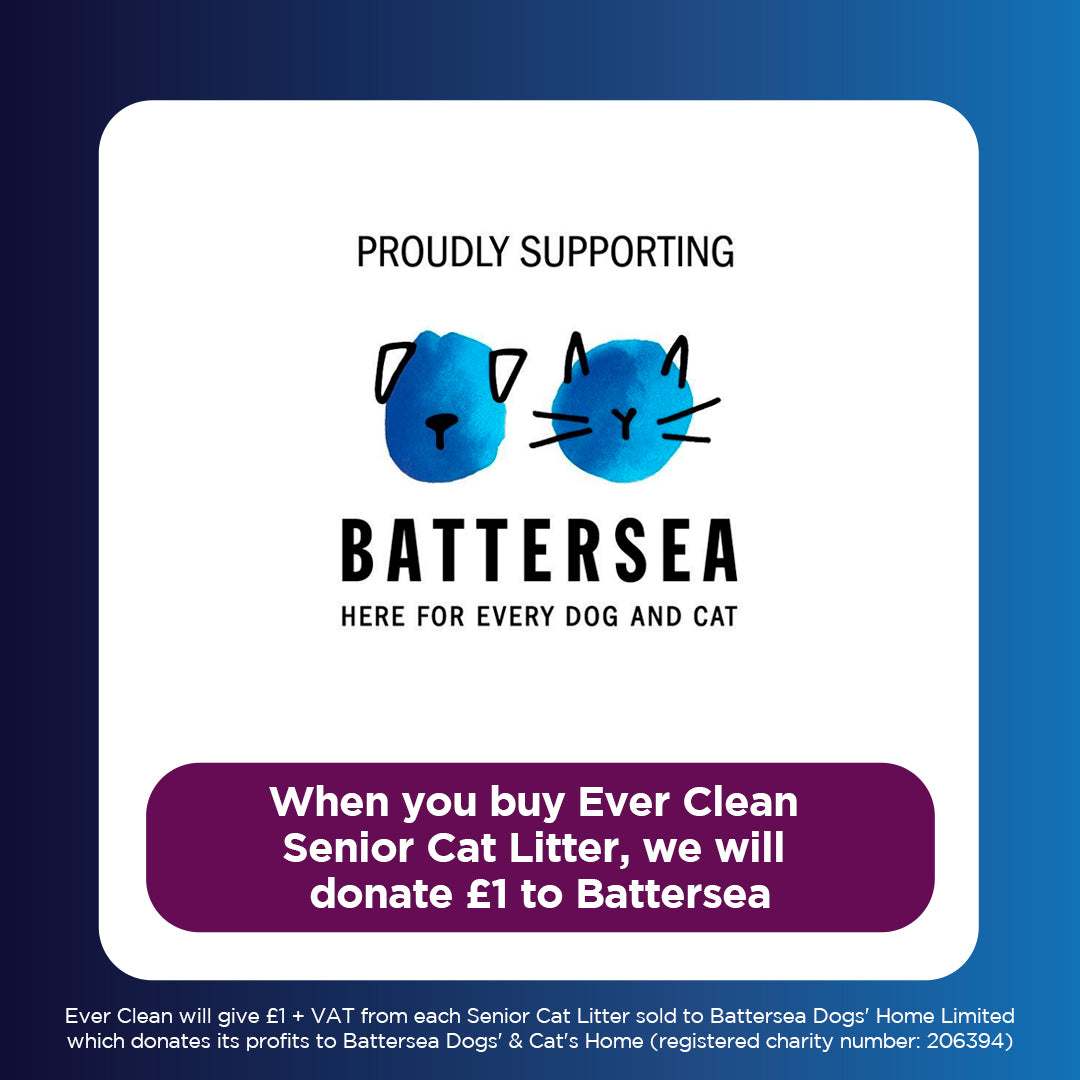 When you buy Ever Clean Senior Cat Litter, Ever Clean will donate £1 to Battersea*