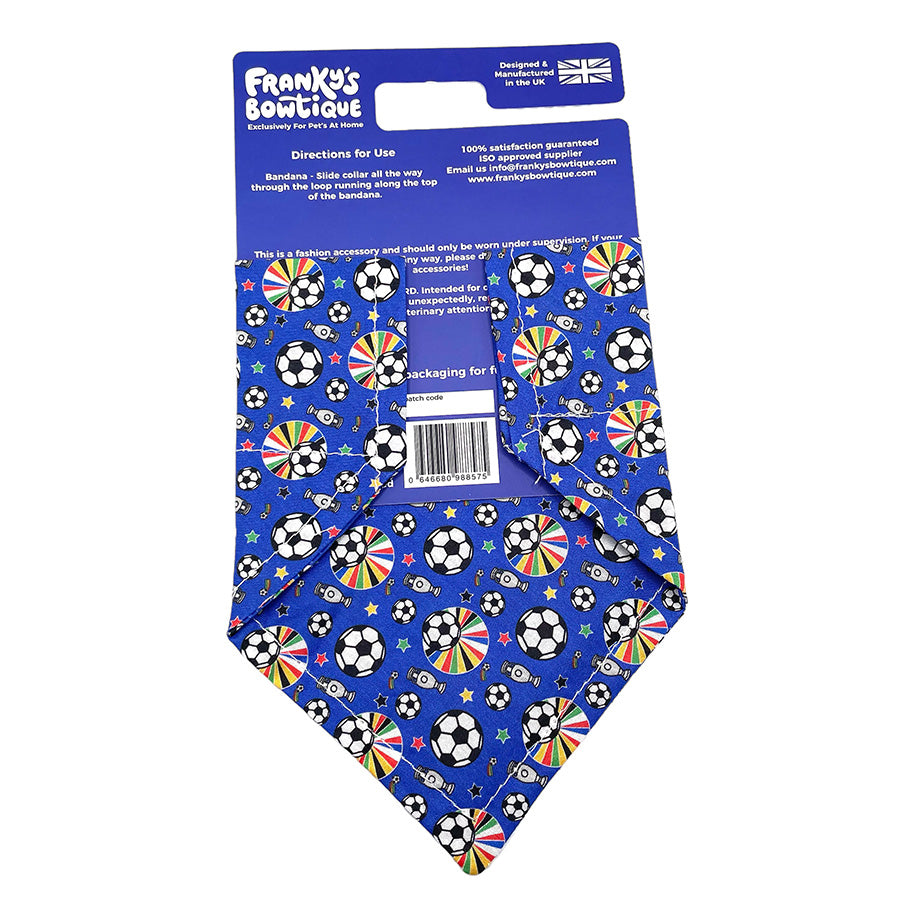 Get your furry friend ready for the Summer with this football print bandana. Whether they're cheering alongside you or just enjoying the game day vibes, this bandana is the paw-fect accessory for your four-legged football fan. Designed to slide right onto their collar, it's hassle-free and comfortable for all-day wear. With a vibrant design inspired by the excitement of the tournament, it's the ultimate way for your pup to show their team spirit. So let your dog join in on the fun and watch them score style points with every wag. After all, It's coming home!