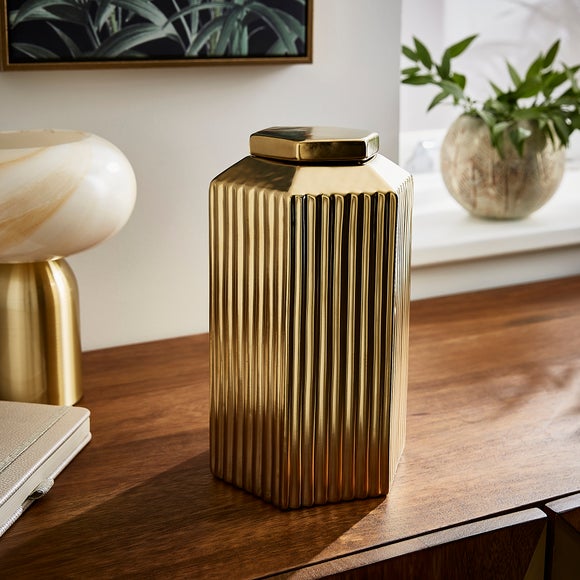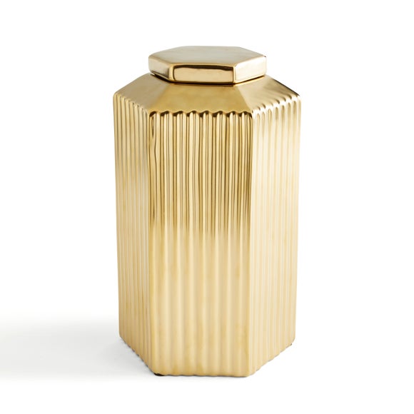 Gold Ribbed Decorative Hexagonal Ginger Jar