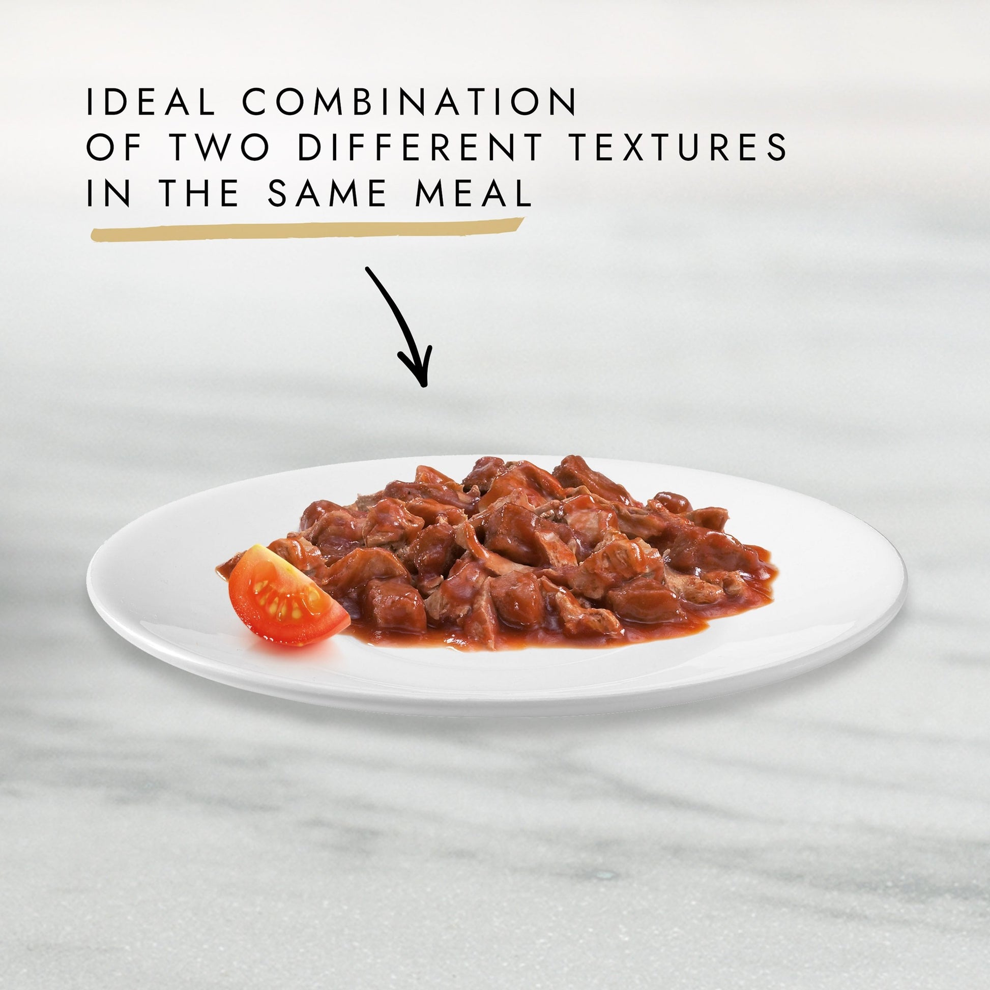 You don't want your cat to get bored with their meals, so you always look for different food choices for them to enjoy. That is why Gourmet Gold has created Double Delicacies, delicious recipes to spoil their sophisticated palate with a different taste experience every day. Tender chunks combined with carefully cooked fine flakes: the ideal combination of two different textures in the same meal to offer your cat the pleasure of a subtle blend of tastes and textures. Double Delicacies from Gourmet Gold, double delight for your cat.