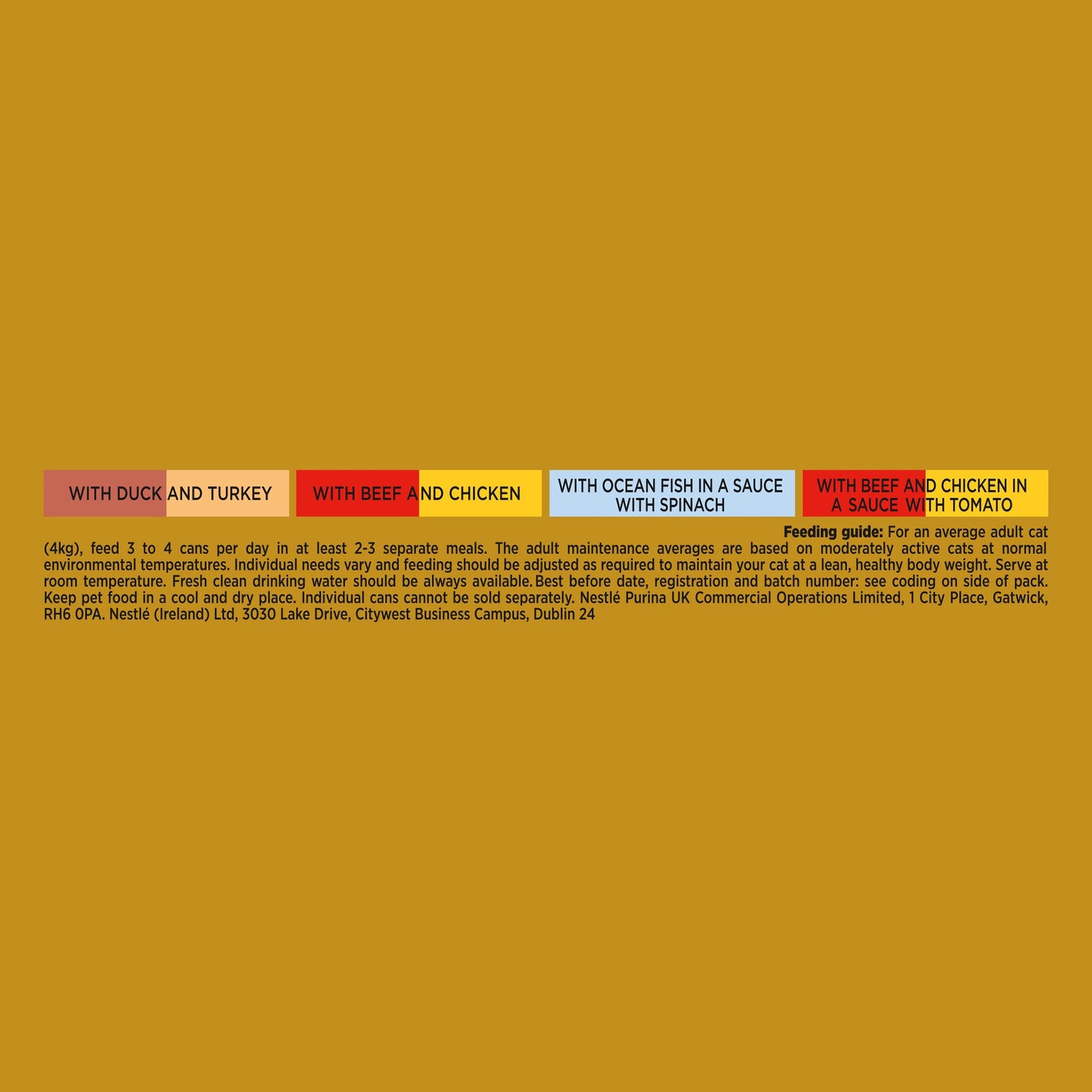 The Gourmet Double Delicacies Mixed Multipack contains delicious recipes with beef and chicken, duck and turkey, ocean fish with spinach and beef and chicken in a tomato sauce. 100% complete and balanced nutritional wet food that offers your cat the pleasure of a delicate and smooth sensation. Served in 85g can to keep every meal fresh and convenient. Packed with essential vitamins and minerals to keep your adult cat healthy with no added artificial colourants, flavourings or preservatives.