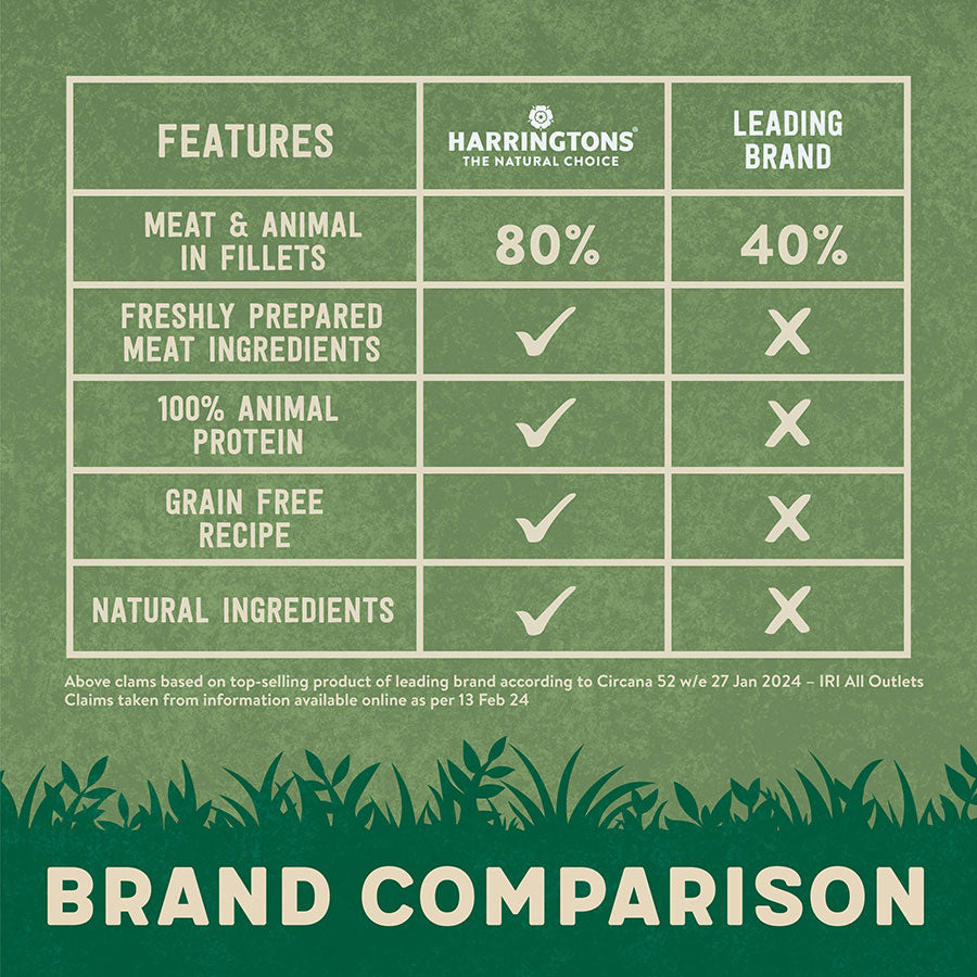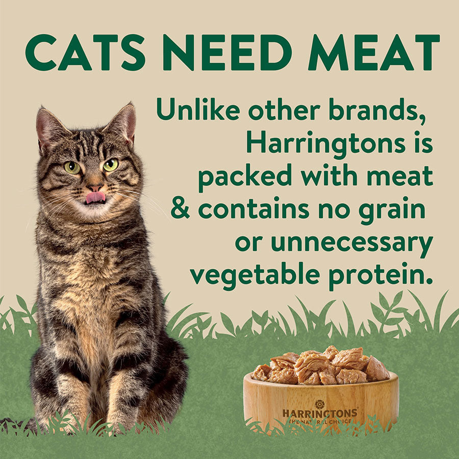 Cats need meat. That's why at Harringtons, they believe cat food should be naturally meatier.
