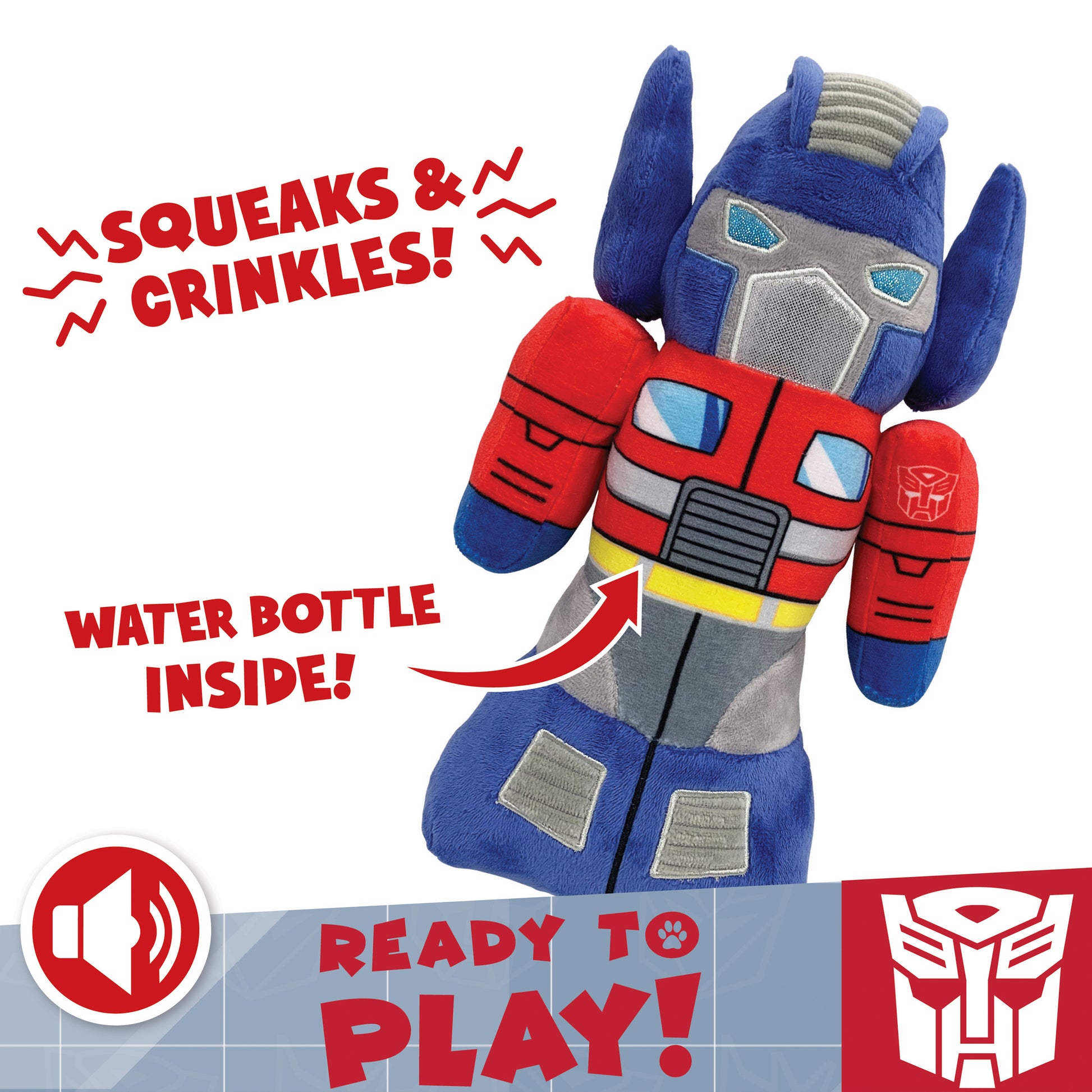 Hasbro Optimus Prime Crunch Water Bottle Squeaky Plush Dog Toy