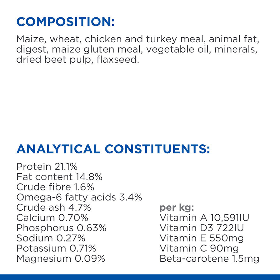 - Maintain your adult dog's healthy skin and shiny coat - With nourishing Omega-6s & vitamin E