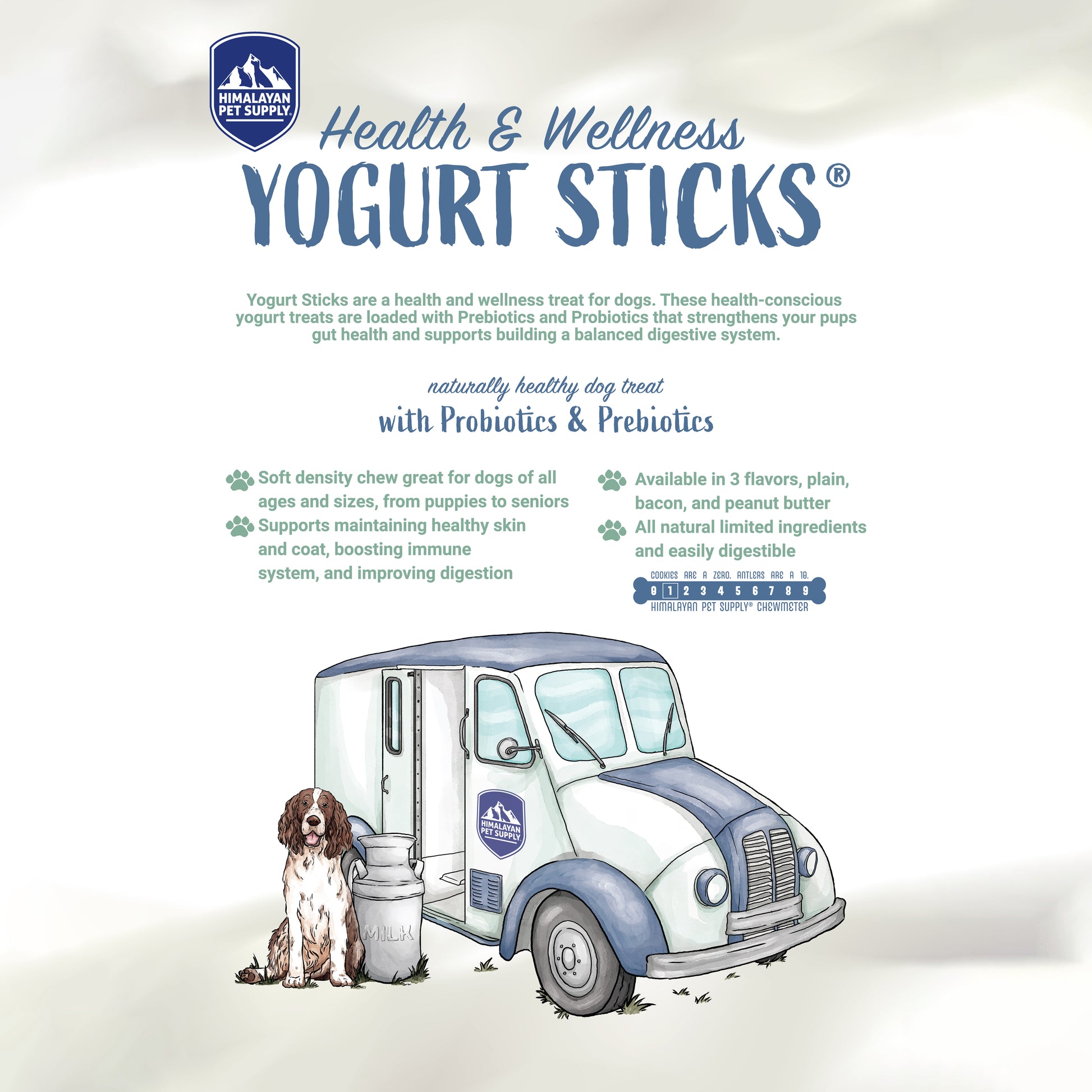 Himalayan Pet Supply Yogurt Sticks Bacon are a health and wellness treat for dogs. These health-conscious coconut and yogurt treats are loaded with Prebiotics and Probiotics that strengthen your pup's gut health and support building a balanced digestive system. They are made with the finest natural ingredients, no artificial flavours or preservatives, and are lactose, grain, corn, soy, and gluten-free. These treats are as nutritious as they are tasty.