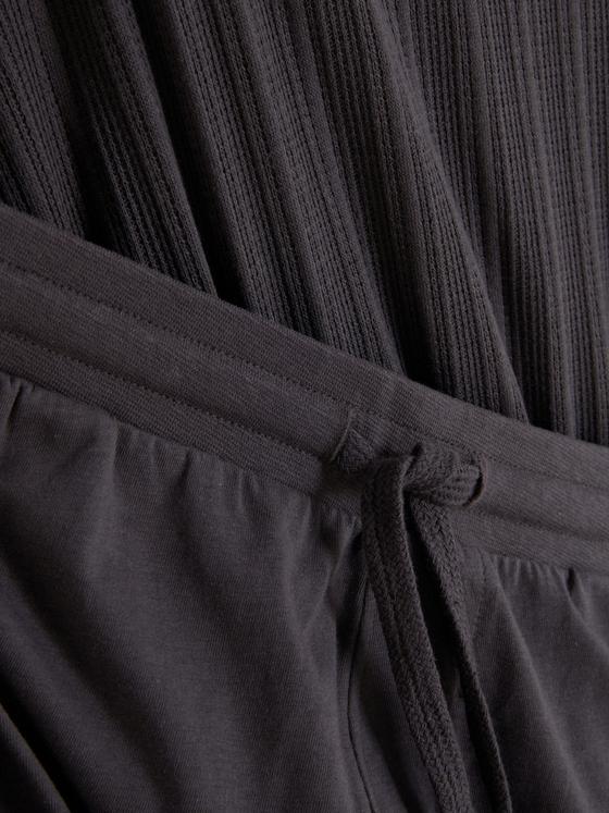 Featuring a short sleeve top and short bottoms, this pyjama set is made from a jacquard fabric with elasticated waistband and adjustable drawcord
