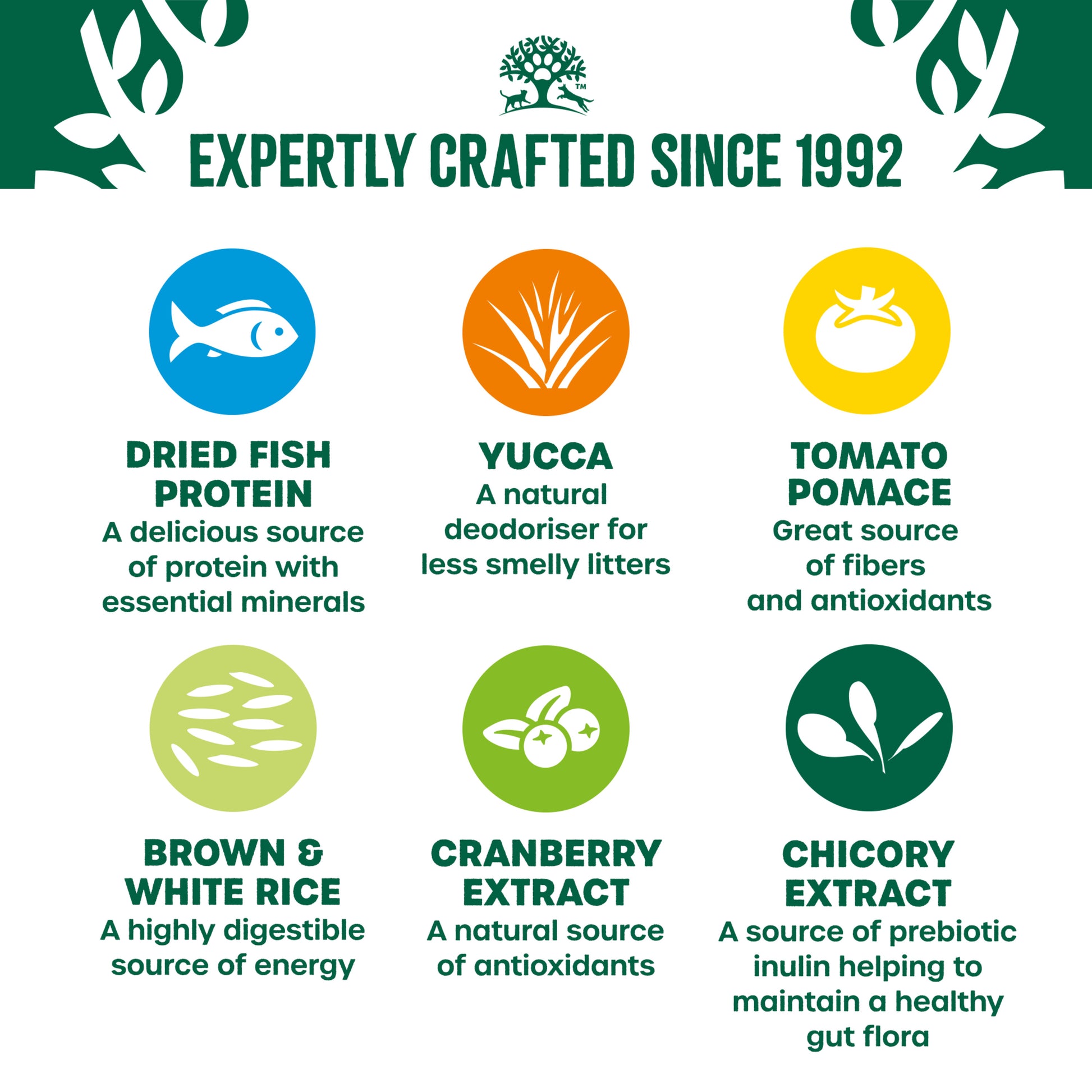 Crafted with nature's nourishing ingredients and combined with sustainably sourced fish to create highly digestible, tasty dry adult cat food. Using their knowledge and experience to include all necessary vitamins and minerals for your cat to have a happy, healthy life. You can be sure they're enjoying a delicious, balanced diet.