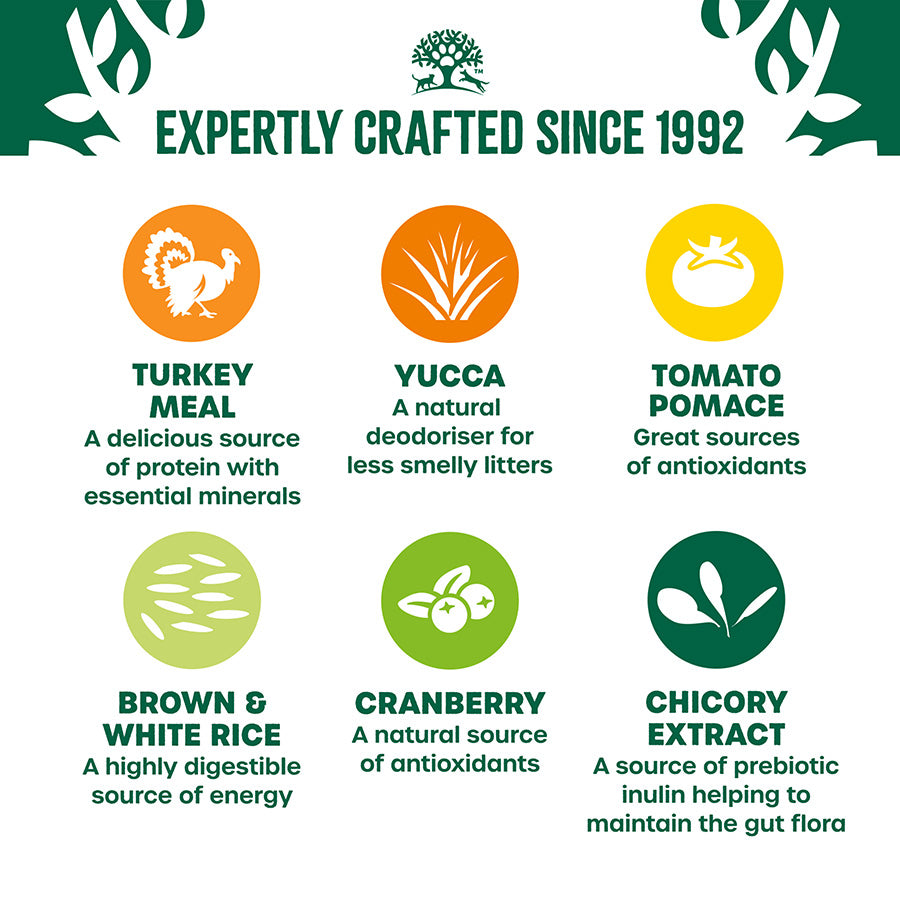 James Wellbeloved have taken a handful of nature's nourishing ingredients and combined them with flavourful turkey for highly digestible, quality protein dry kitten food. Then, using all their knowledge and experience, they've added all the vitamins and minerals your pet needs to stay happy, healthy and full of life.