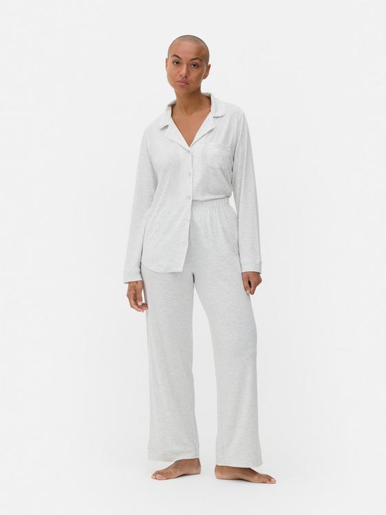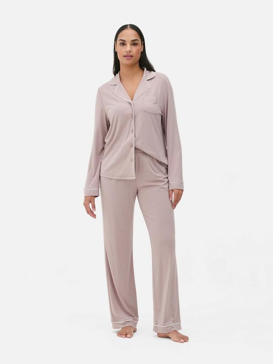 These jersey boyfriend pyjamas are classically styled with a shirt-style top and elasticated bottoms